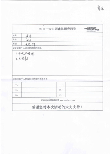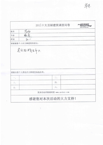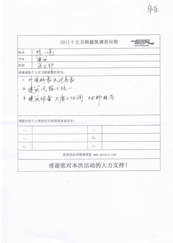 为促进建筑行业健康理性发展,畅言网在举办2010中国十大丑陋建筑评选活动后,2011中国十大丑陋建筑评选活动随即展开。为让更多建筑界人士参与到评选中来,畅言网特走进全国各大设计院,以期聆听来自一线设计师们的声音。以下是我们对华东建筑设计研究院设计师们的采访,感谢大家的关注和支持。