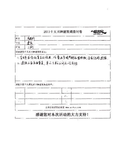 为促进建筑行业健康理性发展,畅言网在举办2010中国十大丑陋建筑评选活动后,2011中国十大丑陋建筑评选活动随即展开。为让更多建筑界人士参与到评选中来,畅言网特走进全国各大设计院,以期聆听来自一线设计师们的声音。以下是我们对上海建工设计研究院设计师们的采访,感谢大家的关注和支持。