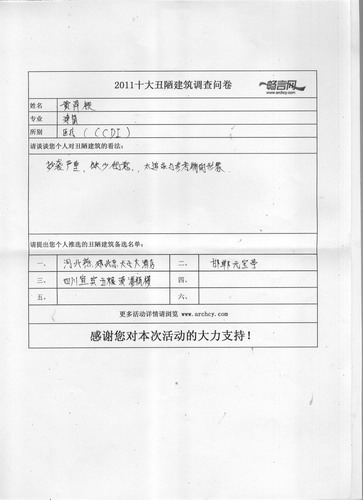为促进建筑行业健康理性发展,畅言网在举办2010中国十大丑陋建筑评选活动后,2011中国十大丑陋建筑评选活动随即展开。为让更多建筑界人士参与到评选中来,畅言网特走进全国各大设计院,以期聆听来自一线设计师们的声音。以下是我们对CCDI(深圳)中建国际设计顾问有限公司设计师们的采访,感谢大家的关注和支持。