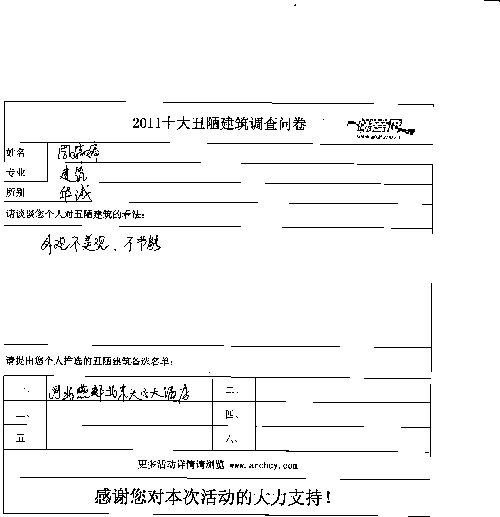 为促进建筑行业健康理性发展,畅言网在举办2010中国十大丑陋建筑评选活动后,2011中国十大丑陋建筑评选活动随即展开。为让更多建筑界人士参与到评选中来,畅言网特走进全国各大设计院,以期聆听来自一线设计师们的声音。以下是我们对中联西北工程设计研究院设计师们的采访,感谢大家的关注和支持。