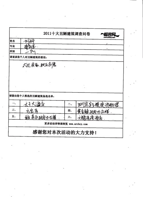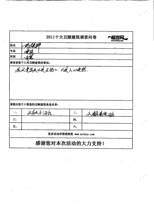 为促进建筑行业健康理性发展,畅言网在举办2010中国十大丑陋建筑评选活动后,2011中国十大丑陋建筑评选活动随即展开。为让更多建筑界人士参与到评选中来,畅言网特走进全国各大设计院,以期聆听来自一线设计师们的声音。以下是我们对广东省建筑设计研究院设计师们的采访,感谢大家的关注和支持。
