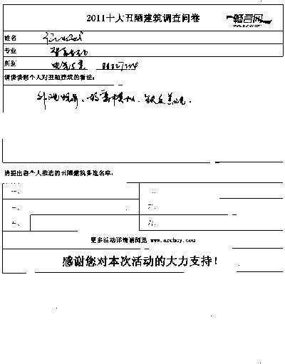 为促进建筑行业健康理性发展,畅言网在举办2010中国十大丑陋建筑评选活动后,2011中国十大丑陋建筑评选活动随即展开。为让更多建筑界人士参与到评选中来,畅言网特走进全国各大设计院,以期聆听来自一线设计师们的声音。以下是我们对中国建筑设计研究院设计师们的采访,感谢大家的关注和支持。