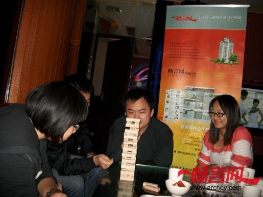 本次活动为建筑畅言网设计师俱乐部的首期活动,主题为“共度经典11·11·11”。2011年11月11日是公认的百年一遇的经典日子,更是被网友们称为“圣光棍节”,本期活动嘉宾们也均由单身设计师组成,希望通过互动交流帮助大家结交志同道合的朋友。精彩的节目表演、桌游、心理咨询师设置的测试游戏使整个活动充满了欢乐的氛围。大家全身心地投入到活动中,一些意犹未尽的设计师直到很晚才纷纷离去。