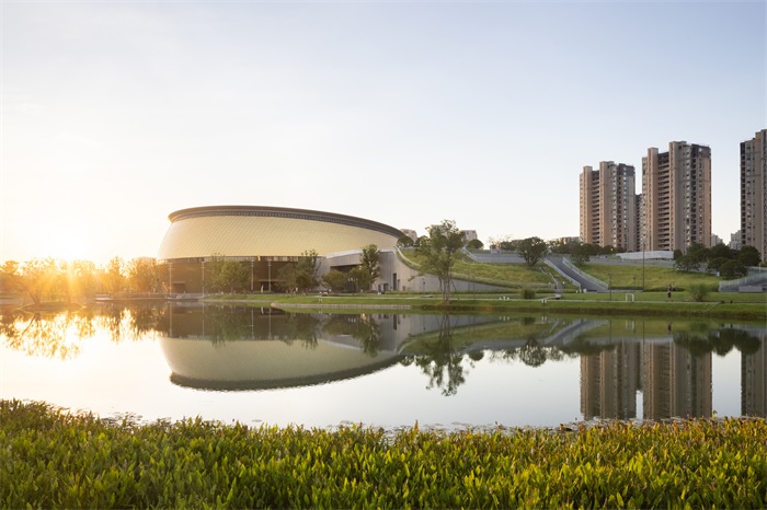 杭州是中国其中一个发展最为飞速的城市,Archi-Tectonics与!Melk联手为该市一个高楼林立的区域打造体育公园总体规划,116 英亩 (47 公顷)的公园占地宽广,共建有7 座建筑。体育公园虽然是为杭州2022年亚运会而建,但其规划设计也放眼未来,为杭州擘画绿色未来的道路开辟出新方向。设计采用“海绵城市”景观策略,打造出一片丘陵绿洲,除了提供一年四季的休闲游玩好去处,也充当城市绿肺以回复杭州当地的生物群系和加强其水文效能。