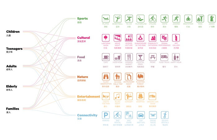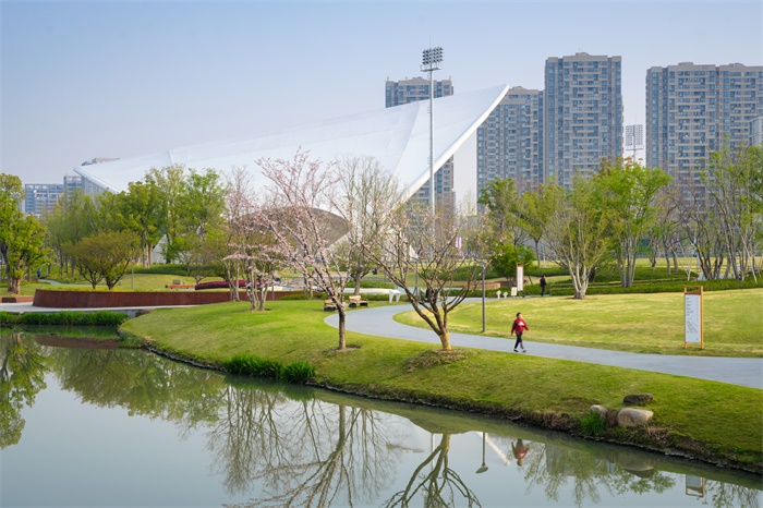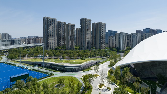 杭州2022年亚运会是自奥运会以来的第二大国际性赛事,体育公园为亚运会的主要场地之一,亚运会期间众多观众將聚集于此,往来场馆观赏赛事。而在亚运会结束后,体育公园会转型为社区绿地,服务杭州所有市民,从小孩到上班族、乃至老年人都能在园内进行各式各样的休闲活动,包括划皮划艇、跑步、远足散步、溜滑板和运动。公园谐和融入并强化杭州原有的城市肌理和基础建设,为高密度的市区空间引进极其需要的绿化空间,作为“城市海绵”和绿肺,收集、过滤并再利用雨水径流。