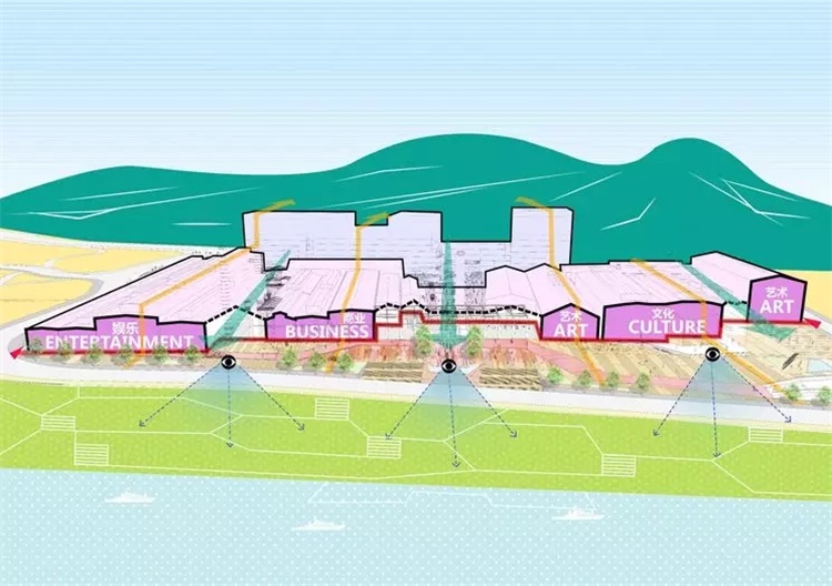 遵循重庆“两江四岸”总体规划要求,设计合理控制建筑高度,并预留城市通廊,在重要位置开放滨江空间,呈现一座凸显重庆场地特质的可见山望水的世界级滨江工业公园。
