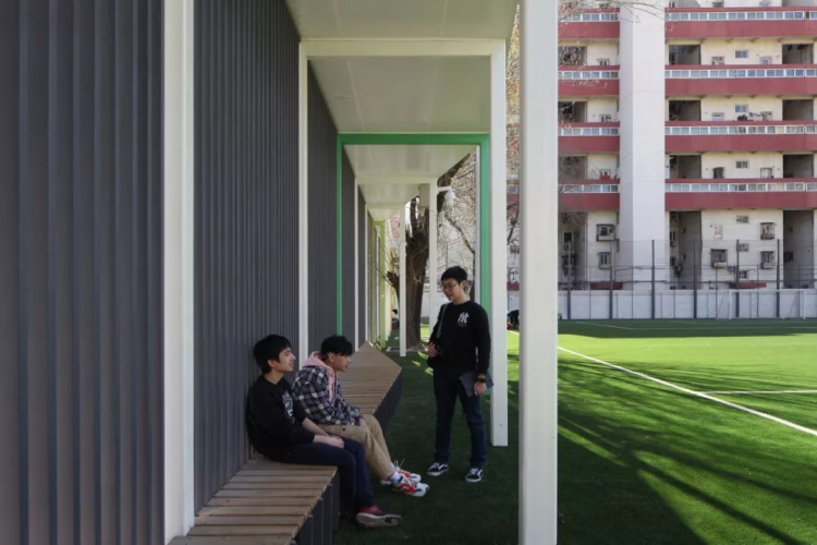 在朝阳未来学校的校园边缘,我们没有建起围墙,取而代之的是一段内置了屋顶和座椅、并最大程度增加了通透性的“游廊围栏”。不仅为校园内部人群提供了非正式社交空间,也强化着校区与社区的联系,鼓励学生接触真实世界。