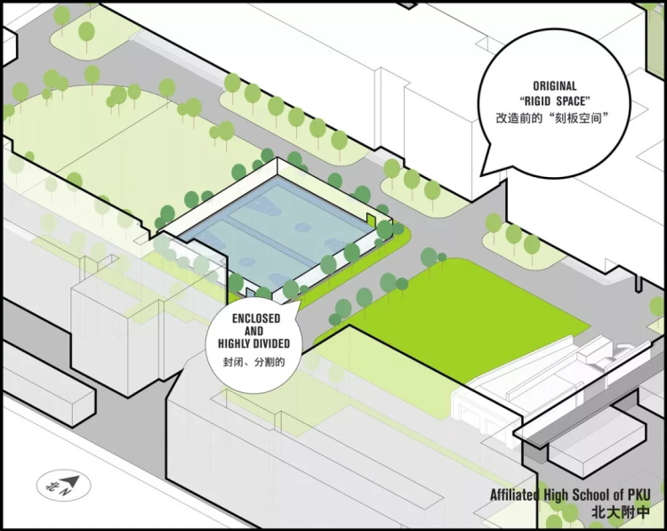 北大附中本校-校园核心区连缀成更完整的自由区域 ©杨超英
