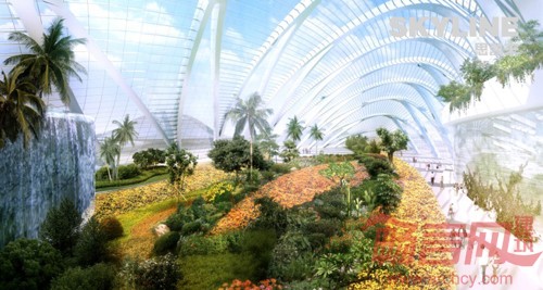 生态设计对于四季城而言并非一个“噱头”,项目依托于周边独特自然资源,构建丰富生态及景观系统,成为绿化设计的要点。生态艺术林荫大道的设计将进入基地的体验带到了一个新的高度,增加了区域识别性。商业区的园林购物式解决方案,突出了项目休闲与绿色生态的特色。室内森林MALL通过树木绿化水景小品带给休闲商业自然的主题与灵感。屋顶花园作为垂直绿化的一部分,也是面向广场的重要空间层次。