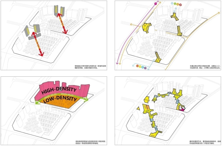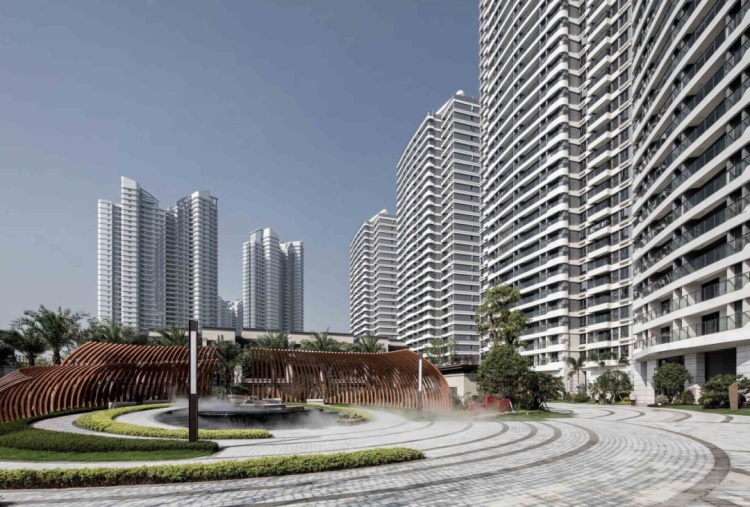 该项目的设计理念旨在通过公共空间的营造,强化滨?;疃缜魑鹾6燃倩疃囊徊糠?。为达成这一理念,该设计重视对公共空间的塑造:将社区公共空间融入沙滩、赛道、绿带中,形成更广泛的活动空间,并与南北地块串联使其建立一种联系,形成“活力C轴”。此轴划分了低层、多层及超高层的体量层次,以此形成更多的共享空间并连接了多个重要节点,使各功能区域均能便捷抵达。社区居民可通过活力C轴,无间断的观赏从环东海湾到城市的全景。