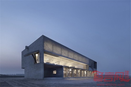 弧线的屋顶朝海的方向张开,暗示着空间的主题。这面弧线屋顶和其上方平屋顶在西侧形成空腔,抵抗下午阳光暴晒对室内温度的影响。阵列的通风井道管壁将上下两面屋顶连接在一起,某种程度上起到空腹桁架的作用,有利于实现屋顶在东西和南北两个维度上结构的大跨度。在天气允许的情况下通风井道可以电动开合,进一步带动室内空间流动。在一年当中的春、夏、秋,三个季节,从下午一点到四点左右,阳光会穿透这些细窄的风道,在空间中洒下慢慢游移的光斑。