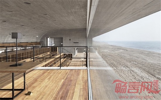 设计是从剖面开始的,图书馆是由主要的阅读空间、冥想空间、活动室和小的水吧休息空间构成。我们依据每个空间功能需求的不同,来设定空间和海的具体的关系,来定义光和风进入空间的方式。