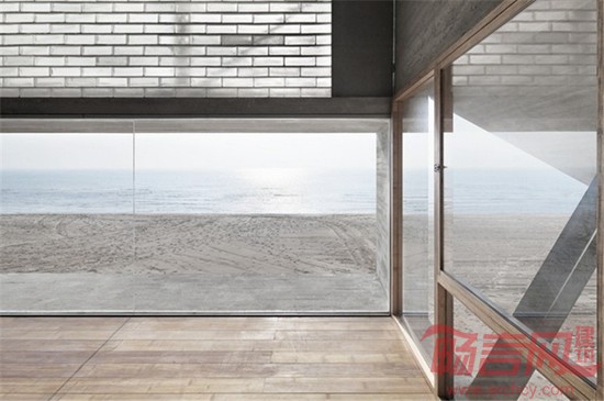 空间东侧朝向大海,一层是一道完全由玻璃旋转门组成的活动的“墙”。在天气好的时候,“墙”被完全转开,形成空间内部与海更直接的开放关系。这道活动的“墙”的上方,是一条横贯空间的水平海景视窗,成为整个空间看海的焦点。为了规避任何一个结构杆件对透明视窗的干扰,屋顶的荷载完全依赖视窗上方的钢桁架支撑。桁架内外两侧均为手工烧制的玻璃砖垒造而成的半透明的墙体,一方面使内部桁架结构若隐若现,另一方面,这种半透明对光线的敏感,可以在一天中不同的时间,在建筑的内外,映射出不同光的颜色和氛围。同时,也在某种程度上柔和了室内的光环境。