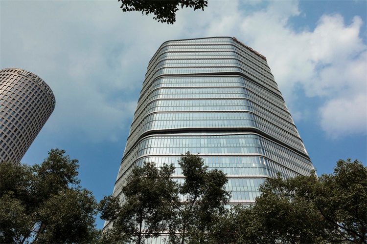 Hangzhou’s elegant tradition of silk production inspired HOK’s design. The building geometryhas a fluid, natural form. Composed in distinctive layers of a minimally detailed exterior glass and metal wall, the tower’s form elicits a soft play of light throughout the day and produces a silk-like veil across the building.