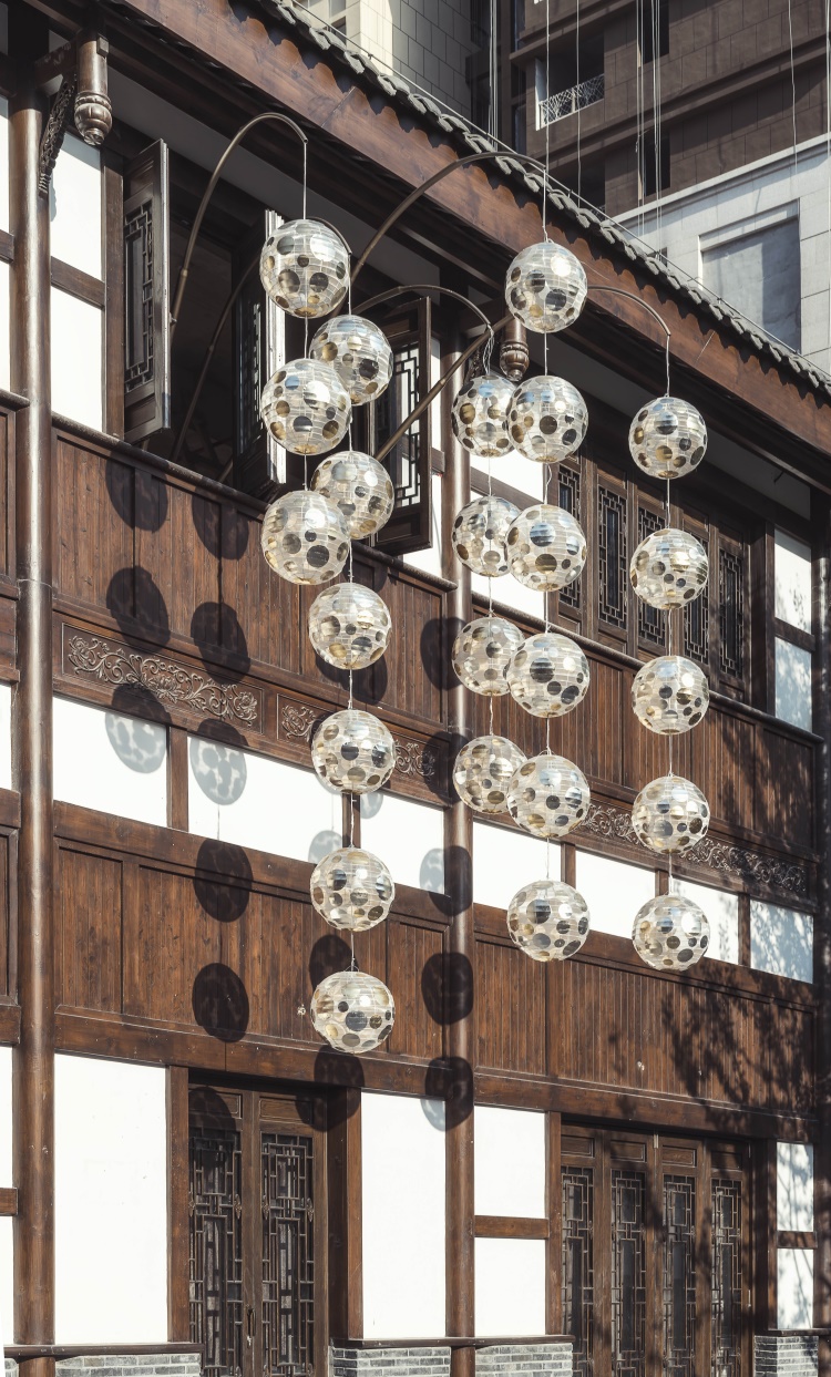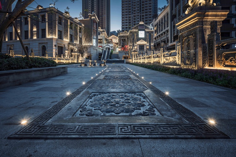 项目坐落重庆市南岸区,眺望重庆大剧院及朝天门,面临长江及嘉陵江交汇处。地段的历史与全新发展和谐共存:为配合和衬托出项目的传统元素,弹子石老街的新建建筑均采用现代中式建筑风格。所设置的框景门窗以及图案隔栅和屏风作为景观导向,能够引导视线,以最佳方式观赏如画的风光。传统的青砖瓦片糅合现代材料,感觉焕然一新,古典的图案也被重新演绎成现代几何图案,创新演绎典雅美感。