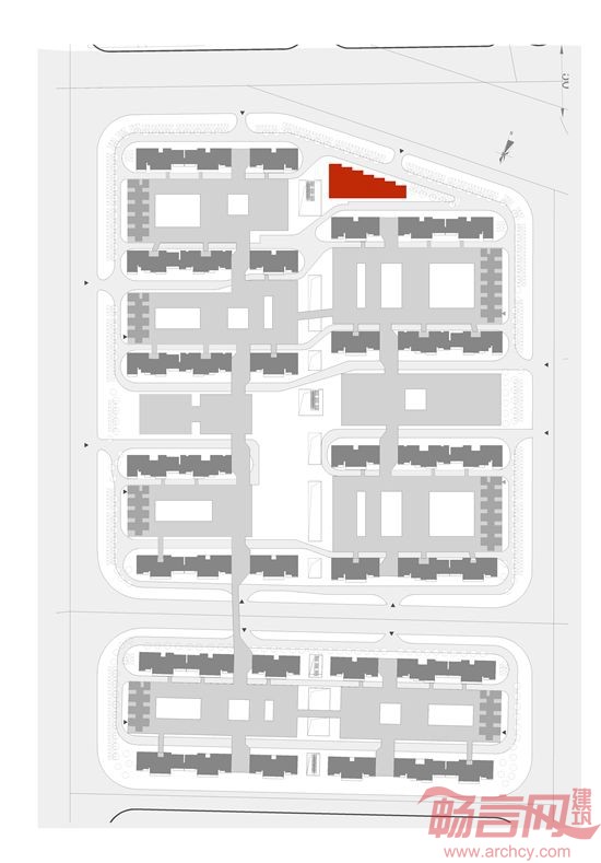项目初期甲方本打算将营销中心定位为临时建筑,后期随场地情况变化时将其拆除。以此为前提,看上去前期的建筑设计能够避开很多限制条件,单体设计与摆放位置都相对自由,但本质上这一做法既不环保也不经济,且浪费了该项目良好的地理位置(位于车流人流密集的路口位置,同时是未来北广场综合体内街的北侧入口)及相应的未来商业价值。本着可持续发展的原则,我方与业主多次沟通最终争取将其作为永建建筑设计建造并保留下来,售楼功能结束后还可作为其他商业或办公空间进行出租、出售,因此营销中心居于不会受到周边改造及综合体建设影响的未来路口三角形广场内,作为未来内街入口的地标建筑。
