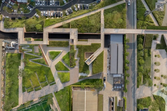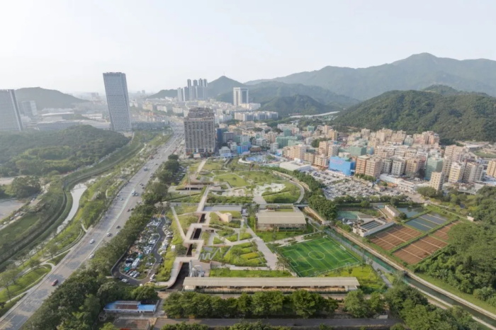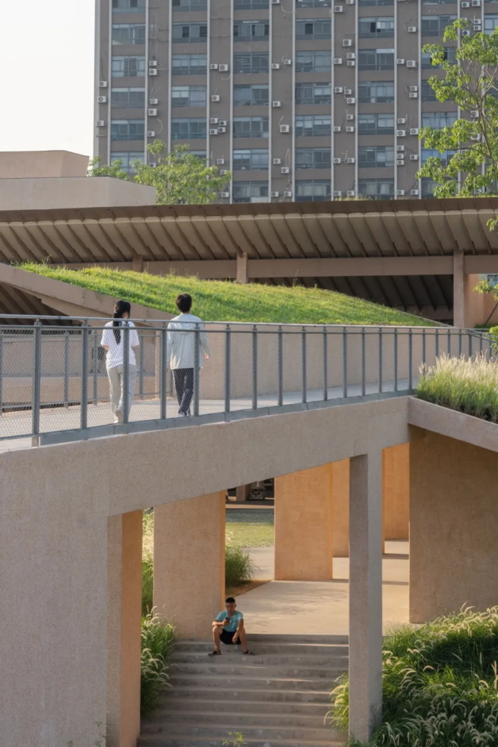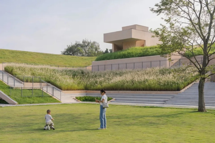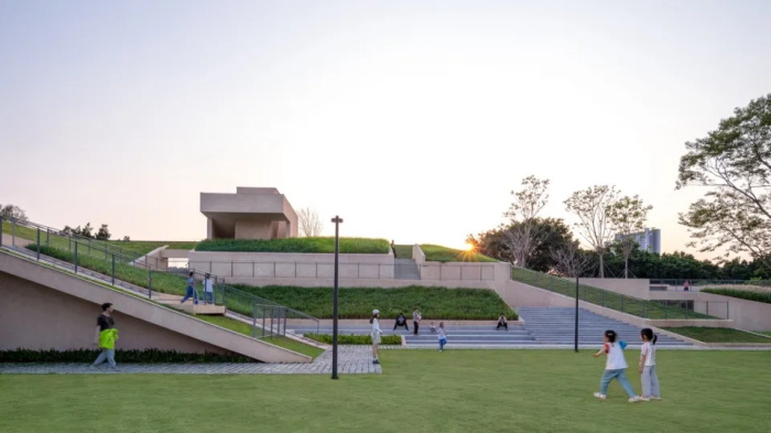 在深圳环西丽湖绿道蜿蜒的脉络中,百旺村南侧曾是一片被围栏紧锁的“失落之地”——约4公顷的土地,其下深埋着肩负城市水管理重任的径流调蓄池与初雨调蓄池?;∩枋┑挠残孕枨蠼涠ㄒ逦看獾墓こ逃玫兀韪袅巳擞胱匀坏那捉?,也切断了村落与绿道的连接。白芒拓印项目的诞生,正是对这片场地的一次深刻唤醒与诗意再造。我们的设计核心在于:破除藩篱,构建开放共享的公共空间;巧用立体复合策略,于基础设施之上“拓印”出自然野趣的大地景观;以“白芒”为意象,重新诠释场地记忆,并编织起村落与绿道的崭新纽带。