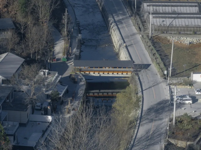 作为区域发展的重要补充,本项目被定位为七星村的“乡村客厅”,目标是将住宿、餐饮、地方产业和村落环境联动规划,吸引年轻人返乡,同时给予游客深入体验秦岭乡村生活的机会,以此改善乡村空心化现状,带动区域发展。项目得到了当地政府的全力支持,并由私营企业出资共建。与外来投资者不同,业主刘丁子和凤永斌作为当地知名企业家,表现出对家乡的爱与责任。从选址就可看出,他们并非只追求景观体验的独特性,更多考虑到了与乡村环境及村民之间的紧密联系。为此,项目选址于七星村及其产业基地的正对岸,仅一河相隔,由市政混凝土桥相连。