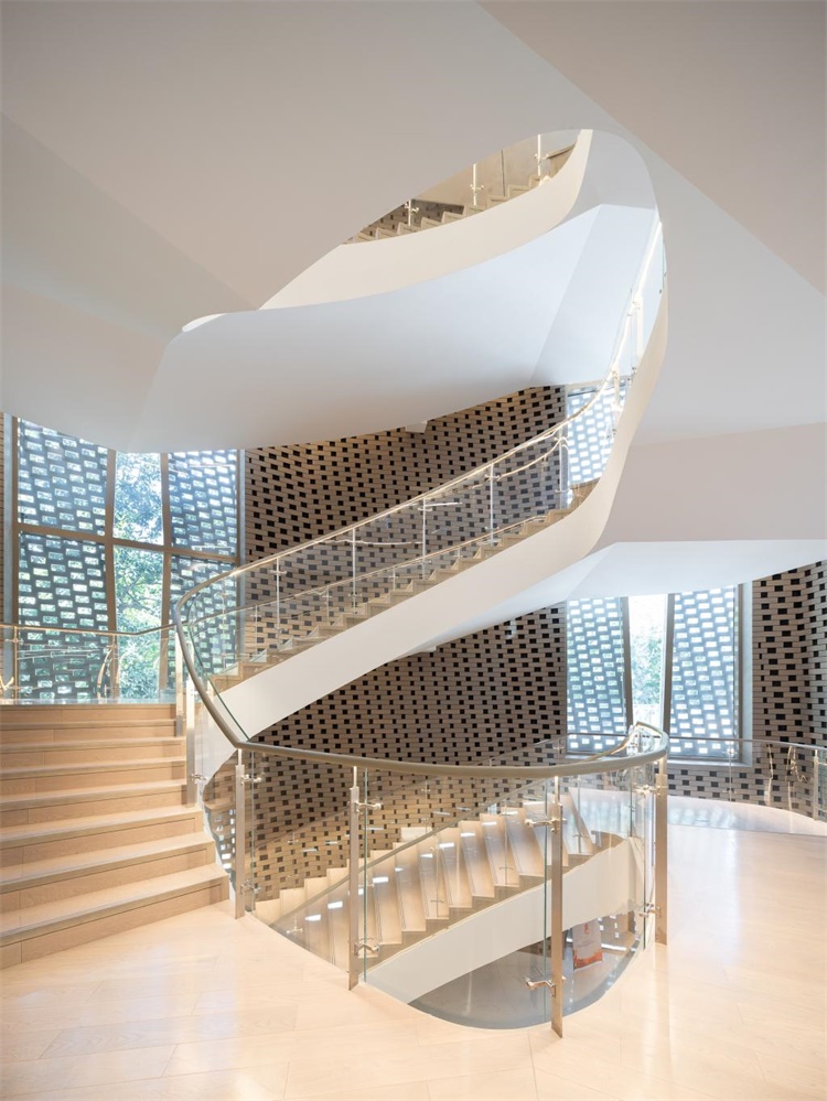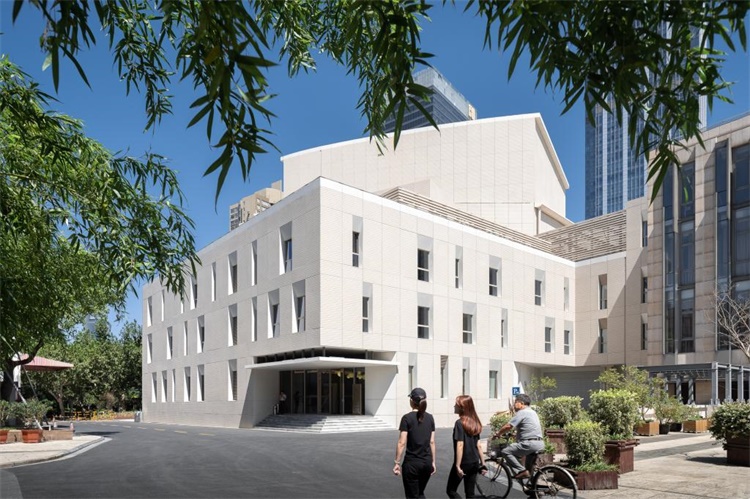 在繁华的淮海路上,上音歌剧院可谓闹中取静,别有洞天,由法国包赞巴克建筑事务所、同济大学建筑设计研究院(集团)有限公司、法国徐氏声学、英国剧院设计咨询公司等中外团队联合设计的国内首个采用整体隔振技术建造的全浮结构歌剧院。历时4年建设,上音歌剧院成为一幢8层综合体建筑,建筑面积31926平方米、地下3层、地上5层,最高处建筑高度为34米。它拥有1个1200座的中型歌剧厅和歌剧、管弦乐、合唱、民乐4个排演厅,以及1个专业学术报告厅,该院院长廖昌永称其为“梦开始的地方”。