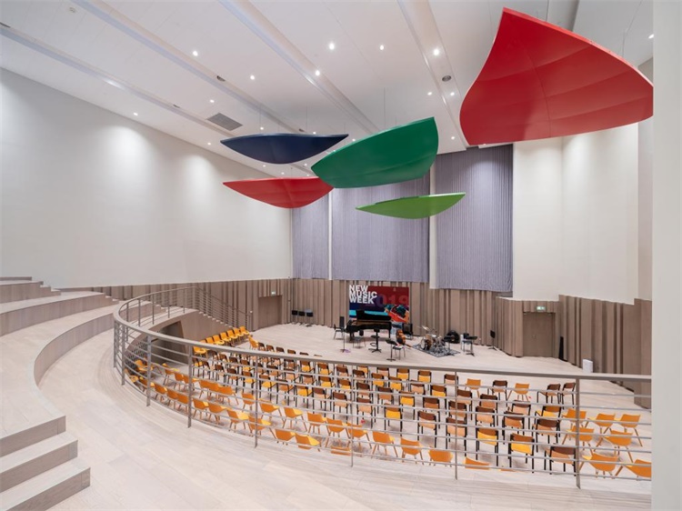 考虑到以后上音歌剧院会经常作为上海市重要演出的表演场地,各种演出形式都会有,不同的演出所需要的声场效果也不同,声学设计在大厅顶部设计了一个移动天花板,侧墙面板安装了移动的吸音板,每一块、每一组都可以上下联动,围绕观众席的反声板墙体均为双层,双层内部有可移动的矿棉吸音板,通过场内体积变化,达到不同的混响效果,目前专业团队测试得出的混响效果已经远远好于预期。“上音歌剧院现在是国内首个采用整体隔振技术建造的全浮结构歌剧院。”业内专家表示。
