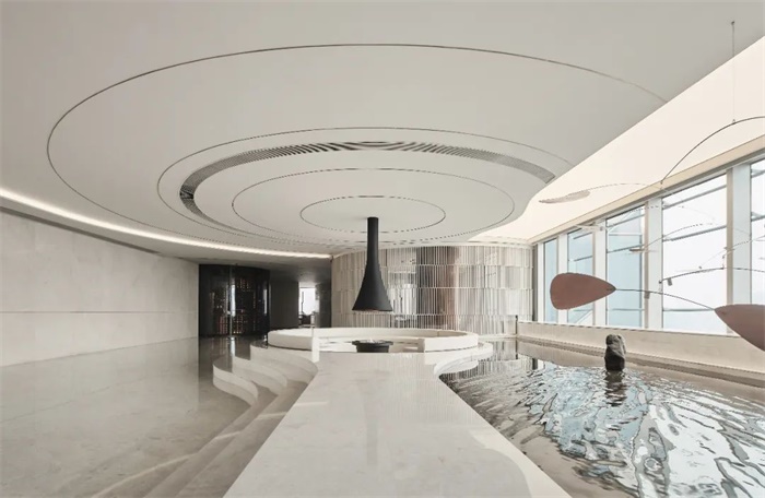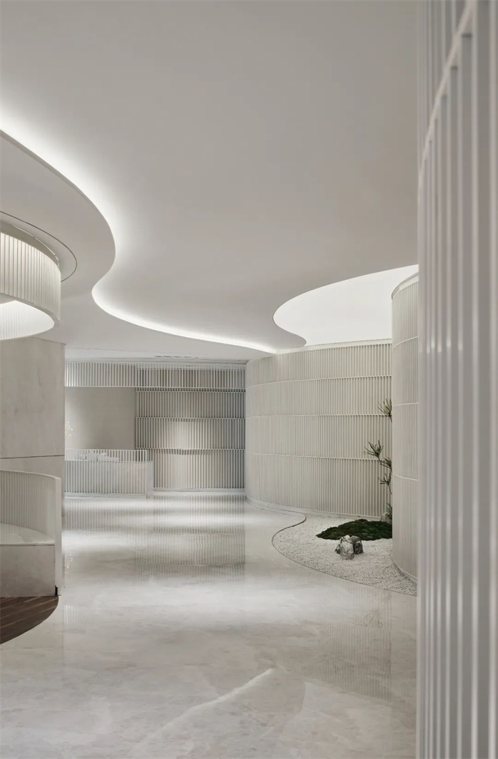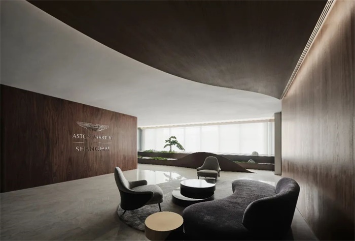 在上海黄浦老船厂边上新建大楼顶上,阔合抽取永恒的流水线条,为豪车品牌阿斯顿马丁创造简单、纯洁、优雅,尽显自然舒适的办公空间。