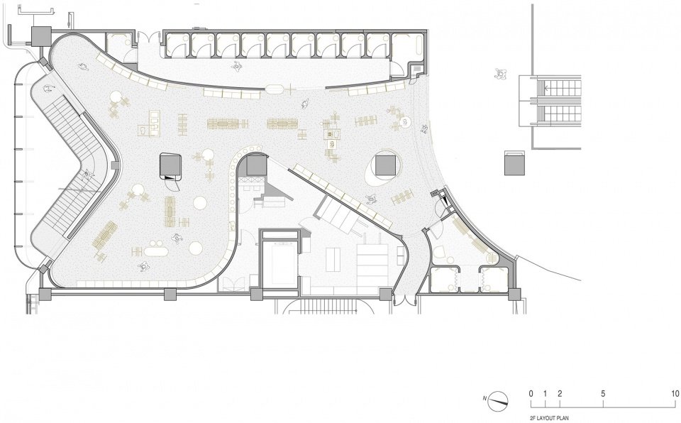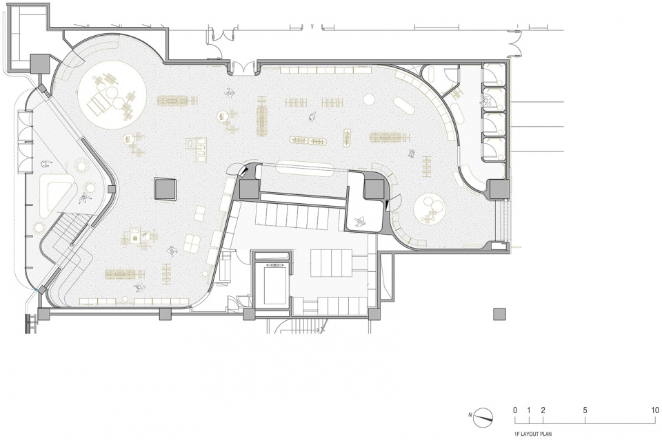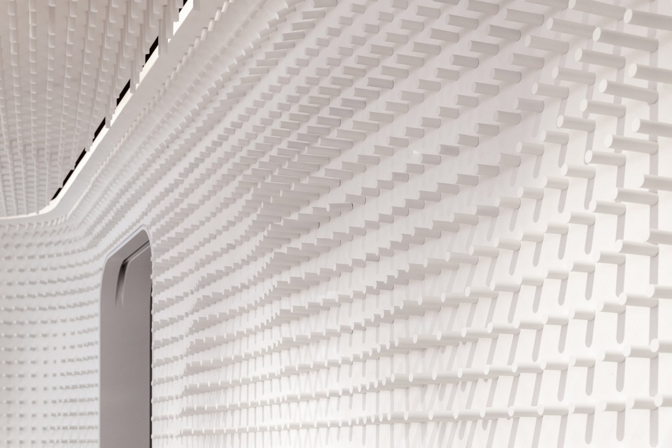 这种有趣的转变不仅与美学有关,更是将运动转化为动线系统的精心编排。当人们在店铺内探索时,他们会发现在空间内蜿蜒延伸的墙壁不仅仅是建筑元素——引导人们穿过商店,如同顾客的同伴,鼓励他们带着能量和目的在空间中探索。在购买运动装备时,人们会自然感知并沉浸在 Lululemon的能量世界中。这是一场交织着设计与运动的零售冒险,将购物行为转变为引人入胜且充满活力的体验。