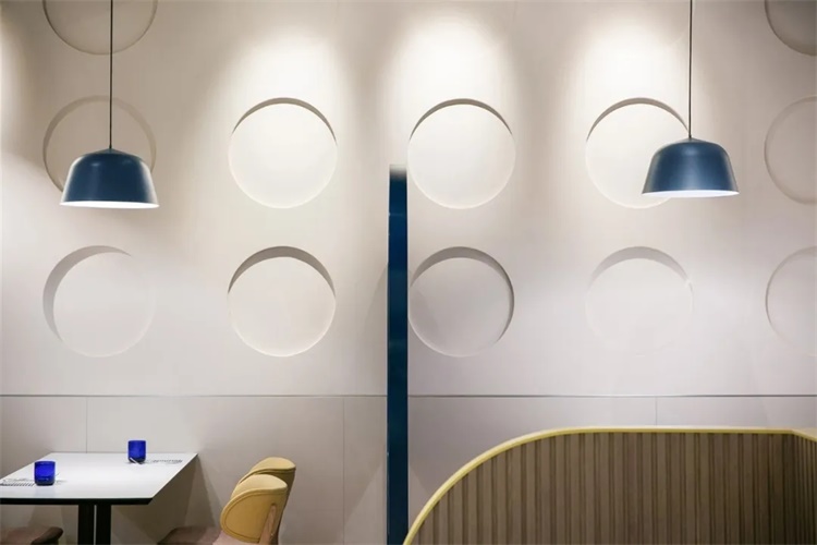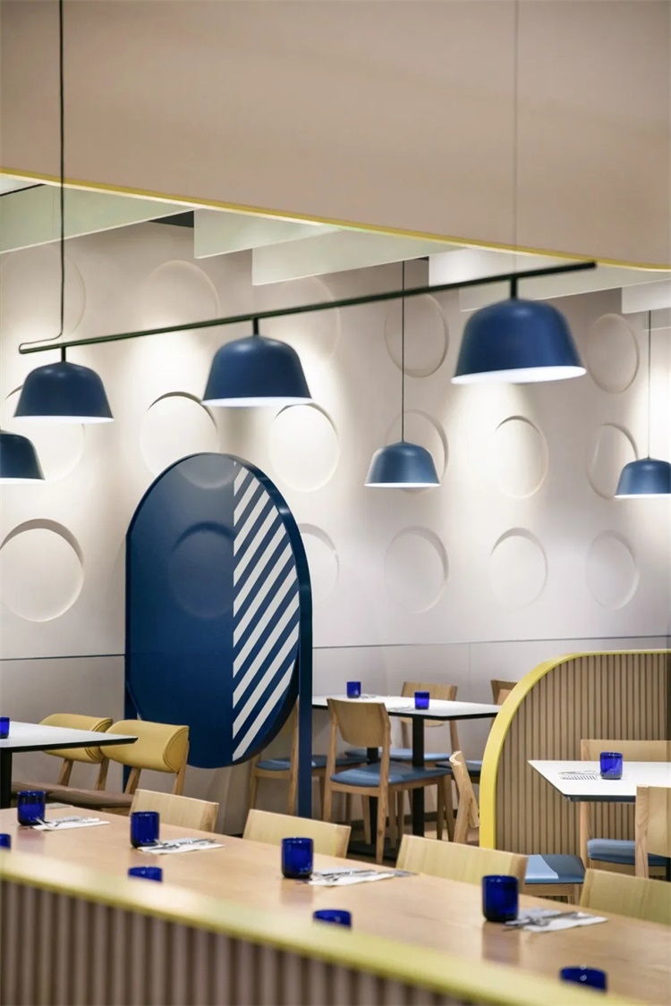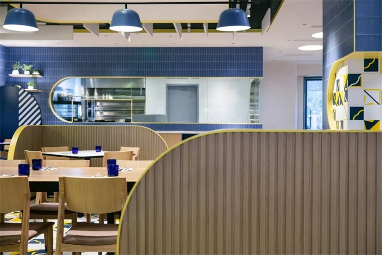 从固定装置到软装装饰,都采用品牌独有的蓝黄色——玛尚诺经典地中海蓝,搭配阳光柠檬黄,让Select与意大利的海岸、阳光产生奇妙呼应。