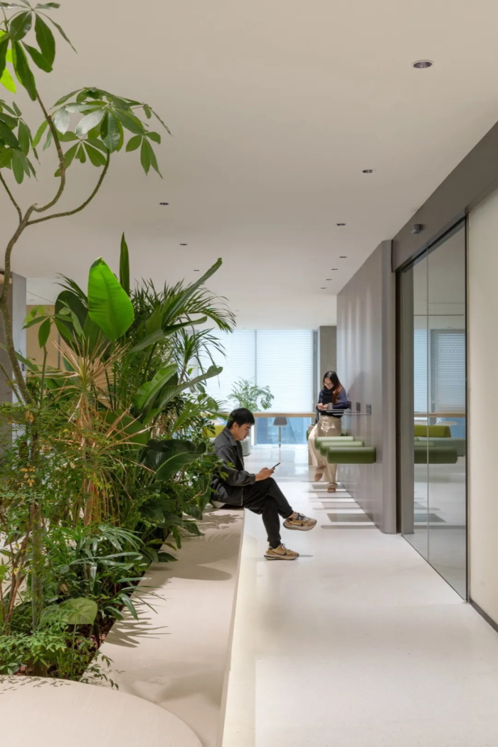 甲方品牌核心理念为“爱与科学”,我们从爱与科学两个关键词出发,从功能上,我们明确了“厚墙”理念。“厚墙”的存在使整个空间井然有序,动线流畅,空间划分不凌乱,同时他也寓意着公司保护爱护着每个员工,就像爱护着每个消费者一样。从开放办公区到独立的会议室,从休闲的茶水间到静谧的资料室,每一处空间都因 “厚墙” 的合理分隔而井然有序。员工们日常工作的动线,也因 “厚墙” 的引导变得流畅自然,不会出现不同路线相互交叉干扰的情况。而且“厚墙” 对于空间细致的划分,避免了办公空间变得杂乱无章,各个区域各司其职,完美融合为一个高效协作的整体。