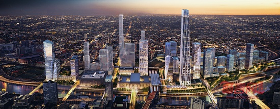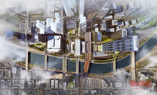 国际建筑公司SOM近期其对于费城第30街火车站地区的规划方案,该项目规模庞大,意在打造一座新的城市中心。