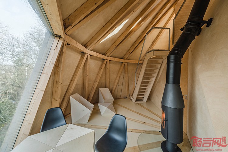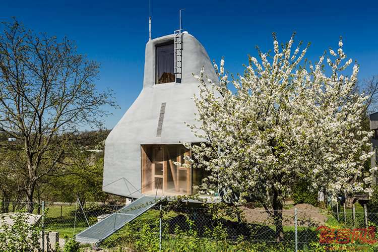 Jan Sepka设计了位于捷克的果园住宅。建筑采用非传统形式,外观如同盘旋在大地之上。项目周边有六棵成年果树,坡地俯瞰峡谷。尺度和总体特点方面,这座建筑都试图同周边环境相互融合。建筑通过一道钢制步行桥梁同外界连接??悸堑匠〉靥氐?,设计师将起居室做成和街道齐平,,双倍层高空间拥有全景视野。