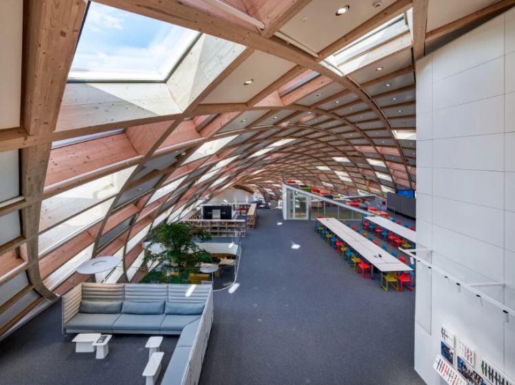 7700块木构件构成斯沃琪大楼的屋面,其工程建造精度精确到0.1毫米。坂茂事务所表示,设计方案“有趣、创新、积极主动”,展示了大规模木质建造的能力。