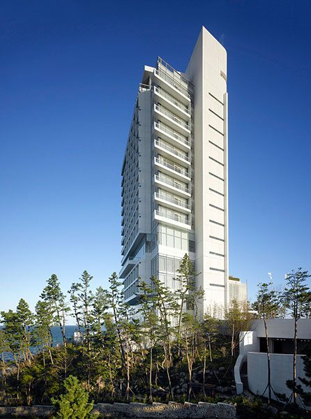 理查德·迈耶建筑事务所设计了位于韩国江陵(Gangneung)的吉马凯酒店(Seamarq)。项目包含两座建筑和附属设施,周围一片茂密的松树林,遥望东海、镜浦湖和太白山。酒店是地区复兴项目的一部分,旨在范围2018年韩国平昌冬奥会做好准备。酒店大楼位于周边场地的顶点,宴会厅位于一层,连接着一座桥梁。