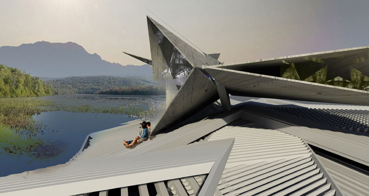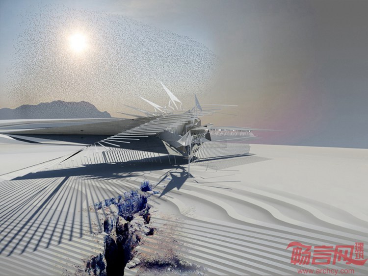 由于意大利近年来地震频发,Margot Krasojevic工作室设计了一个减少地震危害影响的酒店方案。建筑地址选在临近那不勒斯的西部省份。方案布局清晰,考虑到地震影响,震颤和环因素的移位。根据震动幅度设计的建筑将地震危害性降至最低。