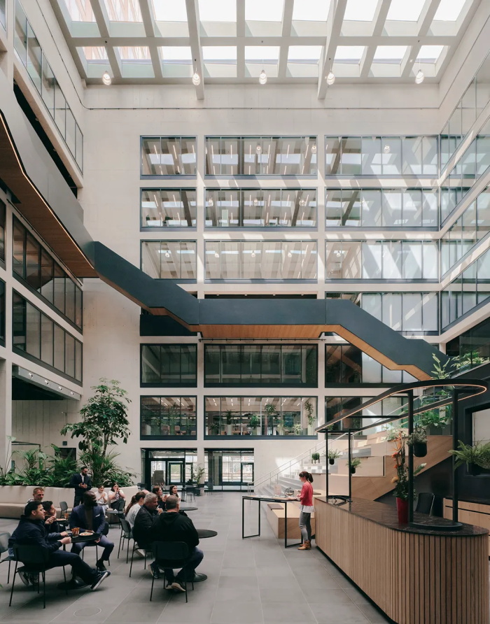 新建筑由两部分组成:一座方形的七层裙房和一座位于西南角、总高近60米的塔楼。建筑的方形网格布局使得各个办公单元的使用更加灵活。