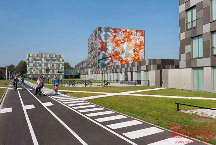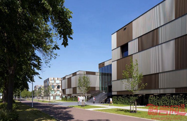 Atelier Pro事务所设计了荷兰Ezinge教育园区。项目面积30062平米,坐落于Meppel,毗邻Ezinge住宅区,介于铁路和运动场之间。建筑呈现出古铜色、伸长的外观,包含无所中学和运动场。新建的Dahliastraat道路将学校同居民区分隔开。尽管学校教室功能独立,但通过公共工坊相互关联,后者面朝马路,学生可以将其作品对外展现。