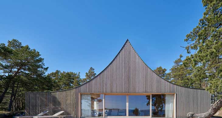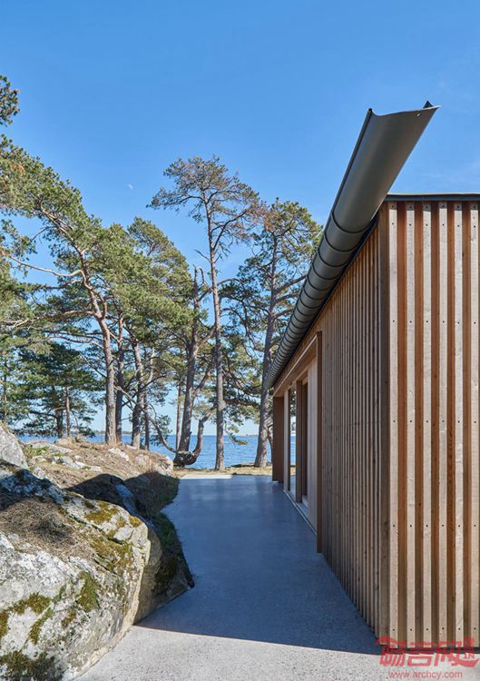 Tham & Videgard事务所在斯德哥尔摩附近的Krokholmen岛上设计了一座住宅。这座建筑拥有面朝灯塔和开阔海面的宽广视野。出于优质的景观条件,设计师创造了大面积落地窗,将室内空间和三个露台相融合。建筑特殊的轮廓赋予室内和室外造型以别具一格之处,让人联想度夏的帐篷造型。