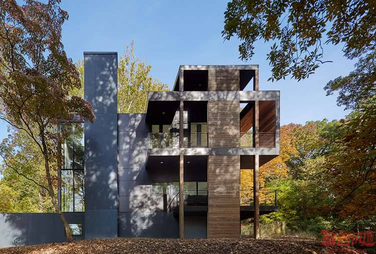 Robert Gurney建筑事务所设计了美国一座家庭住宅。项目灵感来自社区若干座当代建筑。这是一座有四个卧室的住宅,位于马里兰州Glen Echo。设计师表示,社区设有多座华盛顿特区郊外常见的住宅楼,建筑完成于2015年,下方是通往Potomac河的陡坡,住户可远眺秀丽的河景。