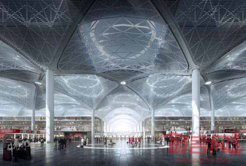 伦敦Grimshaw建筑事务所的设计团队公布了伊斯坦布尔机场设计方案。方案中的机场拥有六条跑道,年输送旅客人次达到1500万。除伦敦Grimshaw建筑事务所以外,挪威Nordic Office of Architecture公司和伦敦Haptic也参与了合作。合作各方面表示,伊斯坦布尔新机场航站楼将成为世界上最大的单体航站楼建筑,面积将近100公顷。设计师称方案“现代、具有很高的功能性,创造了独特的场地氛围”。航站楼设有拱顶屋面,上方开设了多个天窗。这种设计将为室内重要区域提供自然光照,包括登机台、护照控制处和商店。