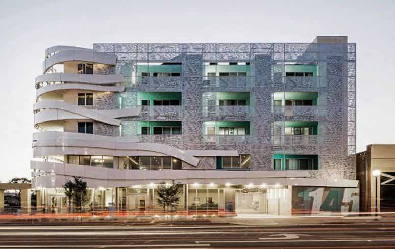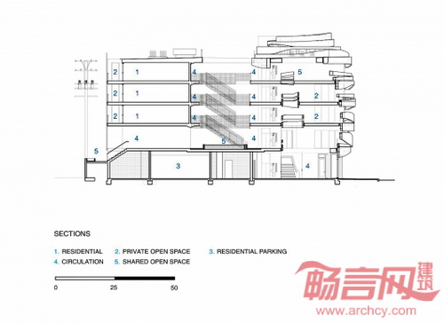 La Brea社会住宅位于加州西好莱坞圣莫尼卡大道北部的一个街区,面积为5万平方英尺。建筑设计理念是不仅加大密度,同时创造充足的室外空间。项目围绕公共室外庭院建造了32套公寓。该项目面向残障人士、非异性恋者、HIV感染者。西南侧用于举办各类活动,容纳了交通空间和居民休闲设施。