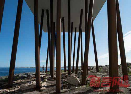 挪威Saunders建筑事务所在风景如画的加拿大福戈岛建造了一栋底层架空的旅馆。项目被命名为“福戈岛客栈”,是这座新近发现岛屿上的艺术住宅项目的最新作品。截至目前,Saunders建筑事务所已经完成了六座艺术家住所工作室项目,其最新作品即是这个容纳29个客房的旅馆。建筑具有X型布局,包含一栋2层结构以及相交的四层建筑。项目设置了若干细木桩支撑建筑,使其对于岩石产生较小的影响,保留优美的海岛风光的完整性。