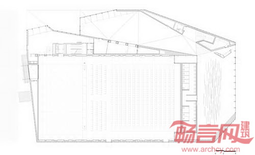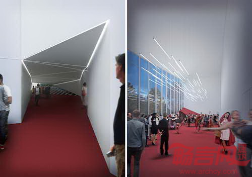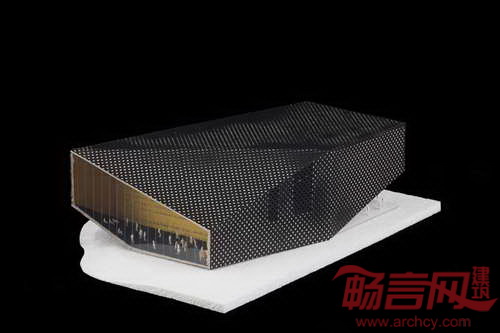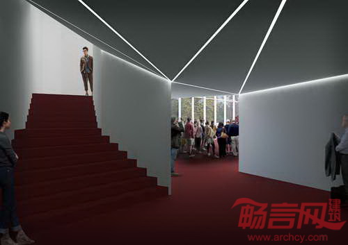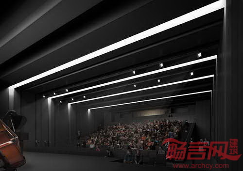 葡萄牙Spaceworkers建筑事务所设计了Paredes市政会堂,其建筑规模从主大厅入口处有所变化,观众进入这座如幕帘一般的表演艺术梦幻世界。建筑的巨大外立面如同一面暗色的窗帘,入口带有银白色光芒,吸引观众进入。灯饰和红毯组成的几何形状如同一张大网,装饰了走廊空间,人们通过隧道一般的通道,进入富丽堂皇的大堂。建筑外墙采用玻璃材质,规模宏大,俯瞰公园景观。室内开放区域直接连接文化中心的核心——500座位的剧院。其他区域包括更衣室、化妆间和休息室,这些连接辅助入口的空间与观众区分隔开。