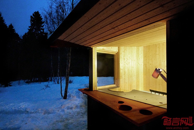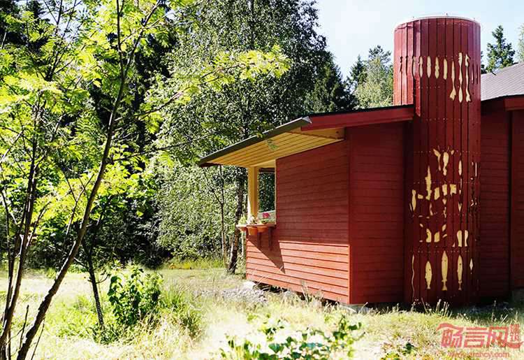 Anders Berensson完成了斯德哥尔摩Archipelago的一座建筑扩建。为了满足低预算要求,并达到精巧设计的目标,设计团队将住宅分成两类。住房盒子被设计成简约的盒子样式,位于场地上方,运用当地材料和建造工艺,而预制建筑元件则由建筑师场外预制,后期被加入住宅之中。