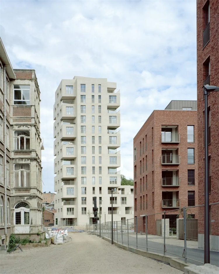 塔楼的设计促进了用户和北侧公共公园的互动,用户在塔楼中可以俯瞰着公园。鉴于塔楼在总体规划中的中心位置,它将成为这一新社区的标志性建筑,矗立于鲁汶的天际线上。而联排别墅和公寓楼则无形中划分出了一条与历史城墙平行的街道。
