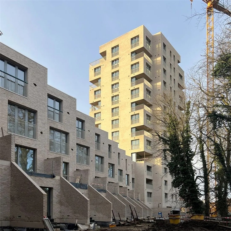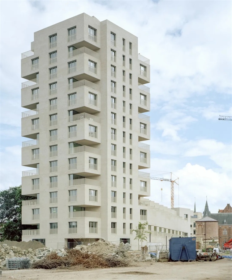 赫托根博斯住宅项目位于布鲁塞尔附近的一座重要大学城中,地处城市中世纪城墙的一片遗址与迪勒河支流之间的一块狭长地带,其独特之处在于它结合了多种住宅类型:一座 14 层高的塔楼、九套联排别墅和一座小型公寓楼,并将它们统一在了一个建筑中。因其位于鲁汶市中心的边缘 ,本项目旨在重新开放该区域并使其重新融入周边城市之中。