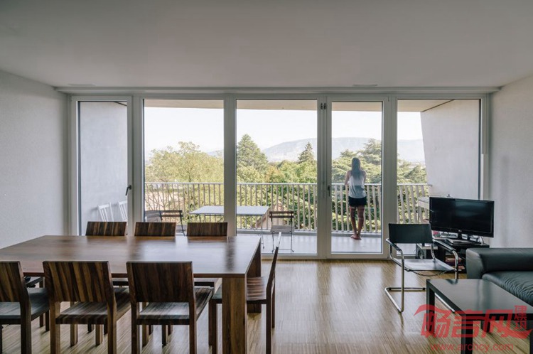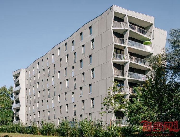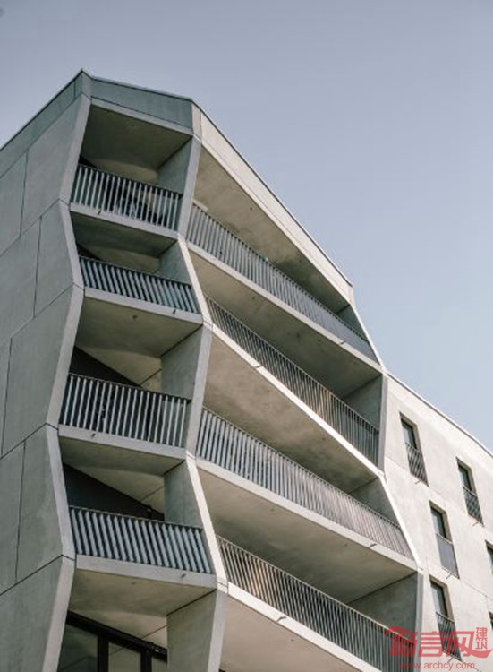 Jolimont公寓坐落于日内瓦Mervelet社区高地势区域,是一块日新月异的住宅区的中央,周围有一些百年老宅和树木。建筑外表皮拥有多种层次,体现了用途和文脉,作为居民和感知环境之间的敏感界面存在。面朝南侧和西侧的预制混凝土板构成居住蜂巢的形态。不锈钢栏杆朝外延伸,并做逐步旋转,营造出弧度曲线,随着光线和角度改变,展现出不同面貌。这种安排同时满足私密性和通透性。公共区继续采用粗粝的建筑材料,地面使用了抛光混凝土板,水泥墙面和铁质栏杆。扶手采用橡木,入口门营造出朴实感,让人进入建筑就有怀旧的感受。