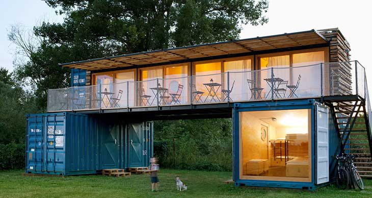 Arkikul工作室设计了集装箱旅馆。这一临时(Pop up)旅馆位于捷克共和国,运用了废弃的集装箱作为原料。坐落于易北河一侧,临近Litomerice市,该设施被亲切地称作“猜火车旅馆”,原因是附近有铁路轨道。项目是将一个40英尺长的集装箱堆砌在两个垂直排列的20英尺集装箱的上方。