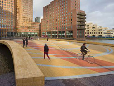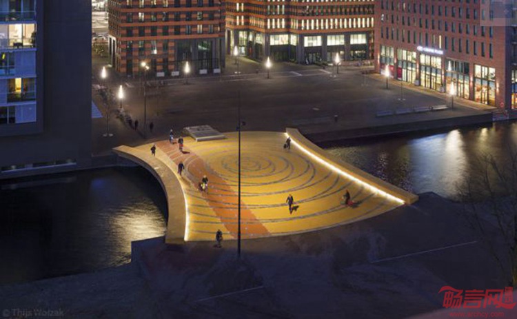 设计师Liesbeth van der Pol这样描述横跨阿姆斯特丹Boele运河的Lex Van Delden桥设计理念:“不仅仅是一座桥,更是一个城市广场。”桥梁连接了城市郊区和中心区,超越了步行或自行车桥梁范畴,让人们对城市中正在发生的事情有所思考。桥梁允许车辆通行,也让过往行人驻足停留,欣赏周边风光。