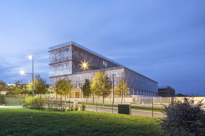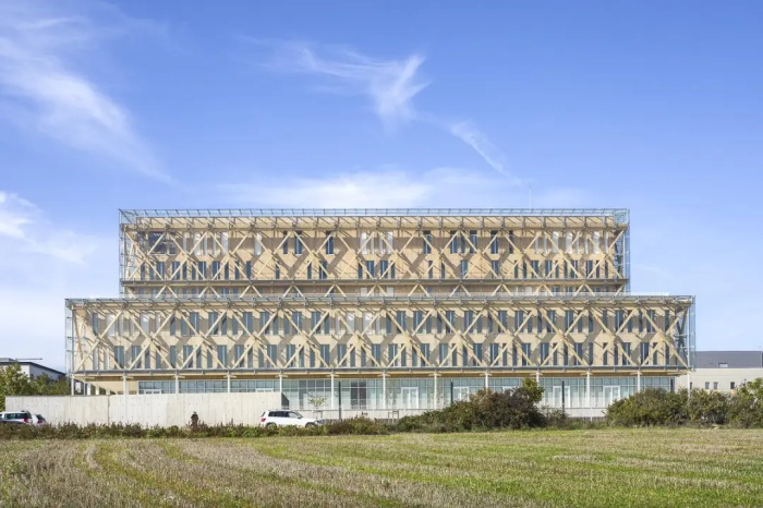 这座外覆木构的建筑,设计灵感源自第戎历史中心的半木结构房屋。半木结构即构成墙体框架的梁系,这一木构框架由木段组成,梁间界定出填充区域。在法国建筑史上,半木结构房屋历经数世纪传承。这种以小型木构件为特色的建造方法,凸显了地方资源的合理利用。直至第一次世界大战,众多木匠及其技艺在战壕中流失,加之钢筋混凝土的引入,这一建造方法的发展才告停滞。这座大型建筑旨在彰显法国传统木工技艺的传承与材料的合理运用。