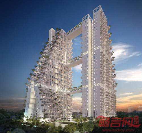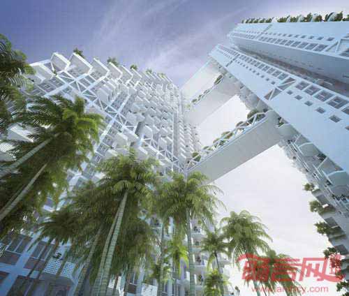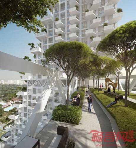 在过去的十余年中,Safdie建筑事务所一直致力于研究实践分形几何在建筑空间领域中的应用,其最新成果是新加坡“天空栖息地”项目。项目是总高38层的住宅综合体,建筑密度高、楼层高、面向城市中高端收入人群,这一建筑类型在新加坡及其他亚洲城市拥有很大需求量。