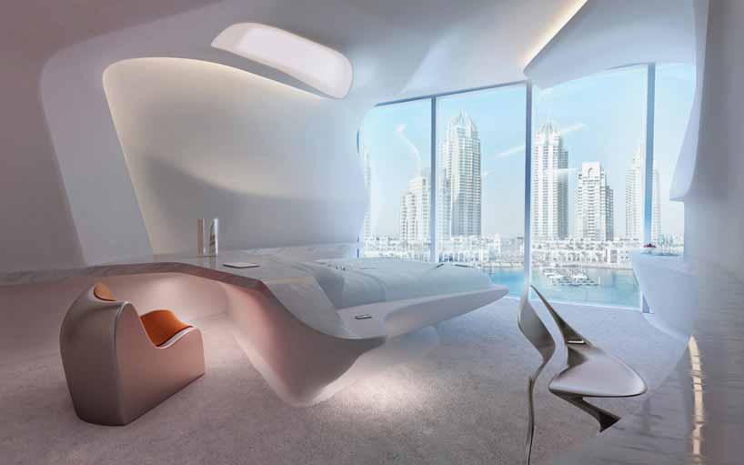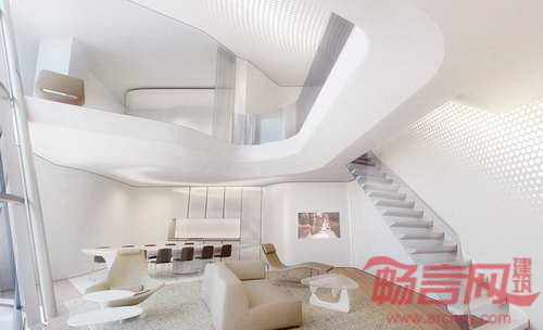 Zaha Hadid设计的迪拜OPUS办公大楼施工工程正在如火如荼进行,近期设计方公布了该项目室内部分的设计。室内设计同样由Zaha Hadid建筑事务所担当。整体项目涉及综合体酒店房间和位于高楼层的公寓单元装饰。酒店套房设计旨在迎合当地居民和国际游客的品位。公寓设计融合当代城市生活方式同家居氛围,提供俯瞰城市风光的全景视野。每个房间设有互动媒体中心,集成数字音乐环境,通过移门和旋转面板,住户可以任意改变空间布局。公共空间设计方便不同背景和文化的住户聚集和交流。
